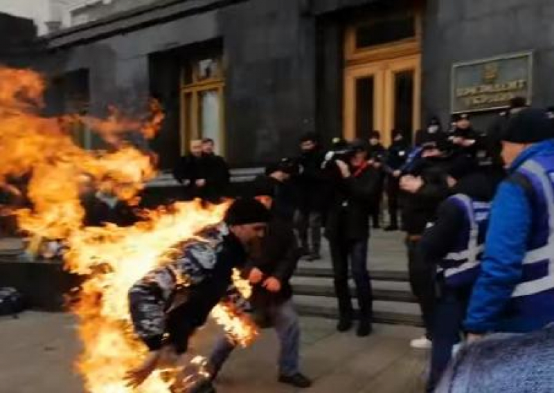 Под Офисом президента украинец совершил самоподжог (Видео)