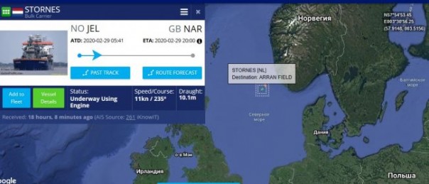 Иностранные суда снова покидают «Северный поток — 2». По данным навигационного портала Marinetraffic, первым ушел крупнейший в мире камнеукладчик Stornes. Он возобновил работы на газопроводе, шведском участке, 21 февраля, однако пробыл на трассе не более недели. Судно ушло в норвежский порт Джелса, а сейчас движется в направлении британского Бродика в Северном море.