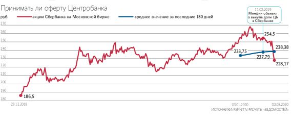 Падение рынков из-за коронавируса спутало все карты. Стоимость акций Сбербанка с объявления о сделке ко 2 марта сократилась почти на 10%: 228 руб. на 19.00 2 марта против 252,2 руб. на закрытие 10 февраля. Сейчас акции госбанка стоят уже меньше средневзвешенной цены за предыдущие шесть месяцев (241,8 руб.)