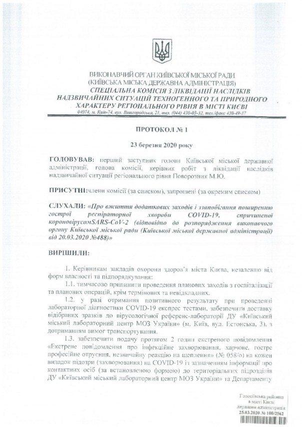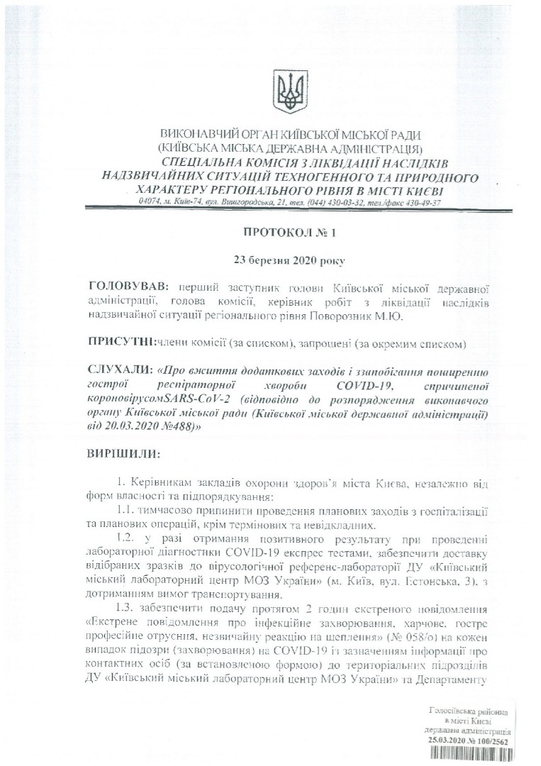 Об этом идет речь в протоколе Специальной комиссии по ликвидации чрезвычайных ситуаций Киевской городской государственной администрации (КГГА).