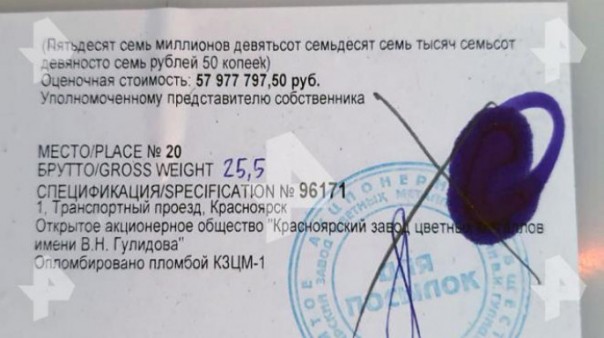 В документах указывалось, что золото принадлежит ОАО "Красноярский завод цветных металлов имени В. Н. Гулидова". Но в пресс-службе завода РБК сказали, что золото ни в коем случае не является собственностью предприятия: "Мы не исключаем возможность того, что данные слитки, данный металл был произведён у нас. Мы оказываем услугу по переработке сырья и получению из него драгоценных металлов. Возможно, какой-то наш поставщик привёз нам сырье, мы его переработали и ему отдали. Какой — это выяснить невозможно".