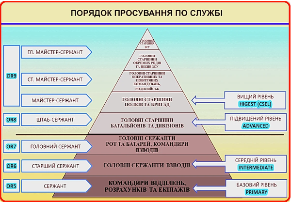 А ниже представлена служебная иерархия всех этих сержантов-мастеров. Это что же получается, что какой-нибудь огородный овощ в чине сержанта на уровне бригады и выше будет говорить офицерам с высшим образованием куда идти и что делать? Выходит что так.
