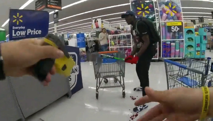 В субботу в калифорнийском гипермаркете Walmart полицейские убили чернокожего мужчину, угрожавшему алюминиевой битой. Начальник местной полиции Леандро Джефф Тюдор опубликовал видео происшествия, снятое нательными камерами сотрудников правоохранительных органов, "для предоставления максимально полной информации всем заинтересованным сторонам".