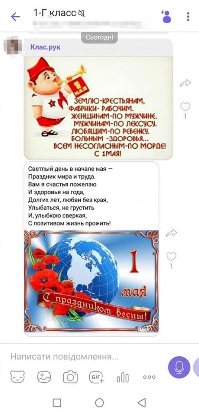 Отметим, 1 мая в Днепропетровске школьная учительница отправила в общую группу родителей открытки с изображением Иосифа Сталина, поздравив их таким образом с 1 мая. На картинках были изображены Сталин и Ленин, а также красный флаг СССР. В Сети сразу же призвали привлечь педагога к ответственности за популяризацию запрещенной в Украине идеологии. Источник