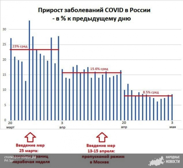 В пункте 1.1 Волков рассказывает официальную статистику, исходя из которой за последнюю неделю в России прирост по коронавирусу составил 166%, а за прошлые две недели аж 315%. Леонид уверен, что РФ на втором месте по «абсолютному приросту» и пытается убедить в этом свою паству.