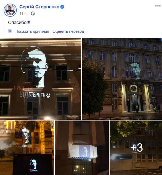 Во всех городах на здания прокуратур транслировались проекции с лозунгами «Руки прочь от Стерненка» и «Имею право на защиту».