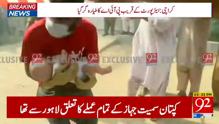 Пассажирский лайнер "Пакистанских международных авиалиний" упал на здания неподалеку от города Карачи. Перед посадкой пилот сообщил о проблемах с двигателем. На борту воздушного судна были 91 пассажир и восемь членов экипажа. Но точное количество погибших до сих пор не установлено. Источник