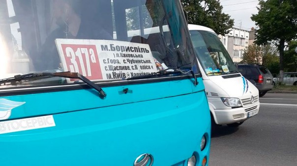 "Сегодня в 9:30 водитель маршрута 317а "ст. м. Харьковская — Борисполь" в грубой форме отказал в проезде моему мужу, участнику АТО/ООС", — написала она.