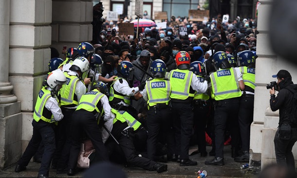 По данным полиции Лондона, в ходе протестов пострадали более 20 полицейских, 12 нарушителей порядка арестовали.