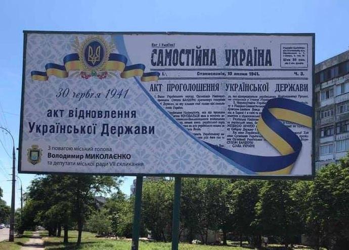 История с билбордами в Херсоне, на которых горожан поздравляют с годовщиной принятия в 1941 году во Львове гитлеровскими коллаборационистами «Акта провозглашения Украинской державы», получила своё продолжение.