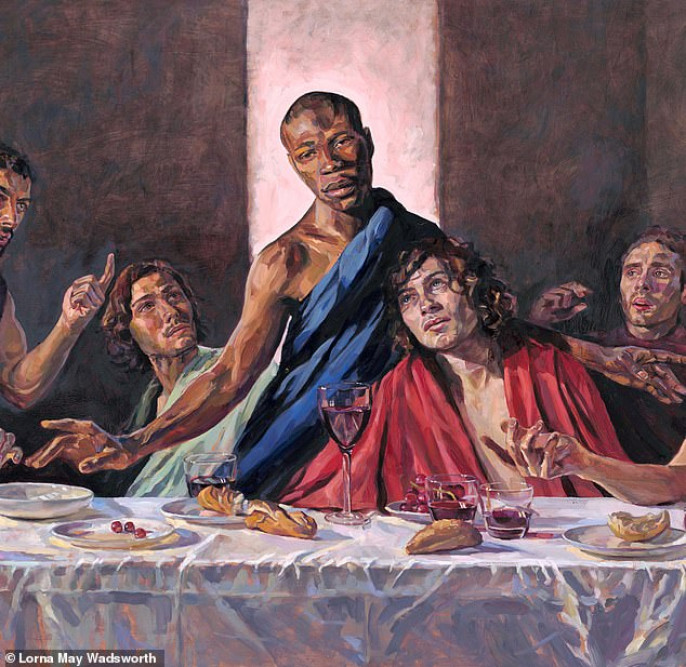 Картину с чернокожим Христом написала британская художница Лорна Мэй Уодсворт, автор известного прижизненного портрета Маргарет Тэтчер. Daily Mail указывает, что Лорна и поддержавший её настоятель бросают вызов "мифу" о том, что Иисус Христос должен выглядеть как белокожий европеоид. "Христа" Уодсворт писала с ямайской гей-модели и поп-певца по имени Тафари Хиндс.