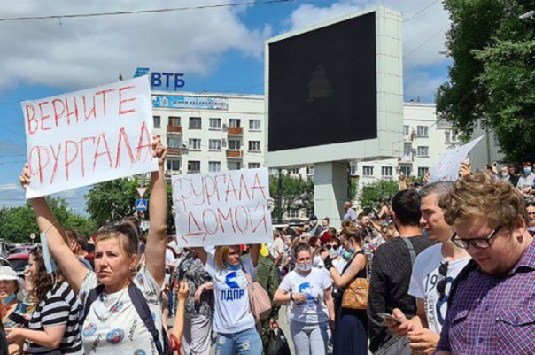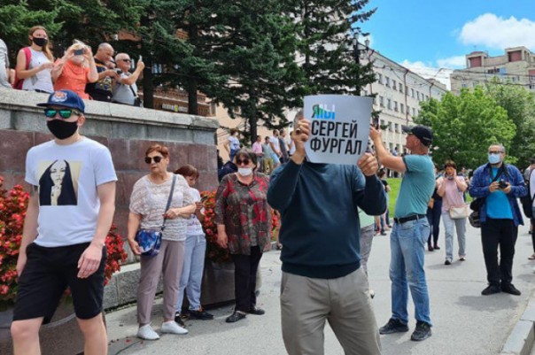 11 июля в Хабаровске состоялась массовая несанкционированная акция под лозунгом "Свободу Фургалу!". Локальные мероприятия в поддержку главы региона Сергея Фургала (обвиняемого в организации убийств) прошли также в Комсомольске-на-Амуре, Николаевске-на-Амуре, Амурске, Бикине, Эльбане, Снежном, Солнечном.