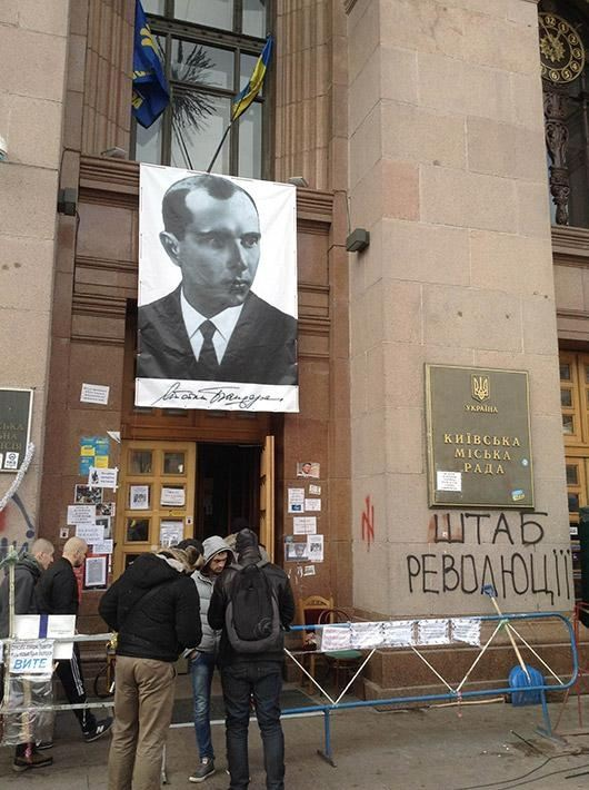 Председатель Харьковской облгосадминистрации Михаил Добкин назвал активистов, которые повесили на здание киевской мэрии портрет Степана Бандеры, "дремучими вуйками и идиотами".