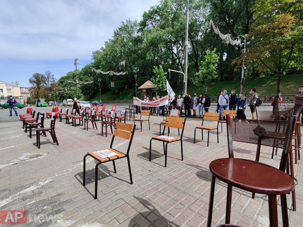 Отмечается, что в знак протеста рестораторы выставили пустые стулья как символ пустых ресторанов.