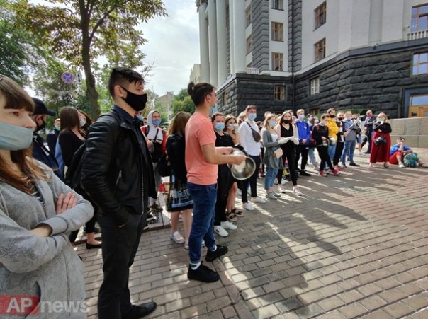 Вчера в Киеве возле здания Кабинета министров также прошла акция протеста работников баров и ресторанов, они требовали от правительства разрешить им работать ночью.