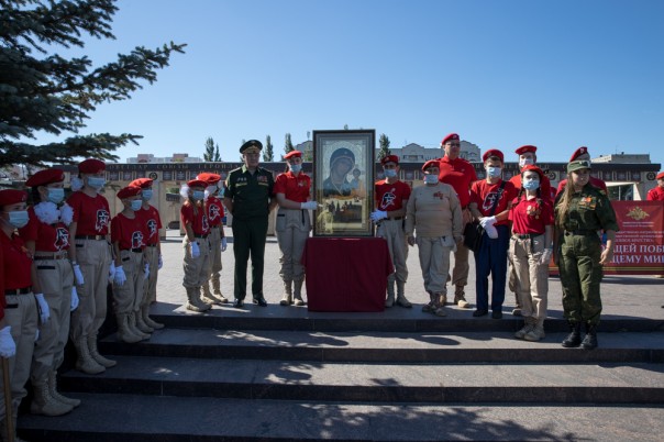 На митинге юнармейцам доверили нести Казанскую икону Божией матери, которую также провозят по городам в ходе автопробега. Воспитанники военно-патриотического движения достойно справились с возложенной на них миссией. По случаю торжественного мероприятия юнармейцы были одеты в парадную форму: бежевые брюки, алые рубашки-поло и береты с фирменным логотипом «Юнармии» — изображением орла и звезды. «Стартовав из Владивостока, мы идем по городам и несем главные смыслы и символы многонационального, многоконфессионального русского мира», — подчеркнул начальник штаба «Юнармии» во Владимирской области Павел Григорьев.