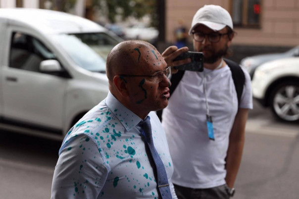 Народного депутата от «Оппозиционной платформы – За жизнь» Олега Волошина атаковали у Верховной Рады, облив политика зеленкой у входа в парламент.