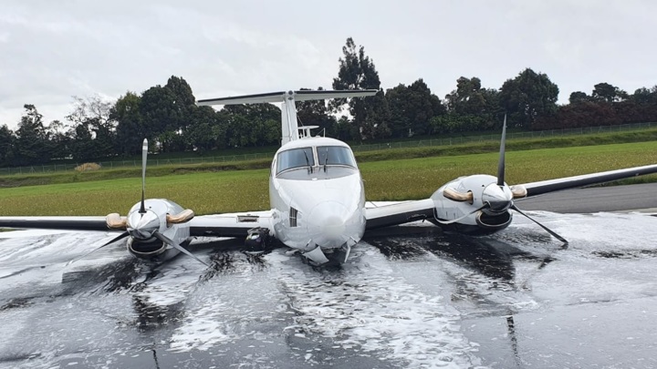 В Сети появились кадры аварийной посадки, совершенной экипажем самолета Beechcraft 200T Super King Air в аэропорту колумбийской столицы Боготы.