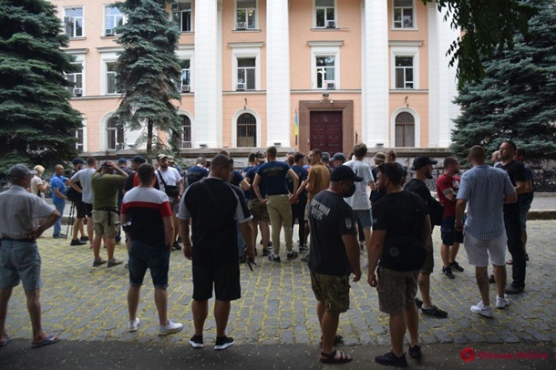 Позже зданием СБУ на Еврейской прошел пикет в поддержку укроблогера. В нем участвовали представители Нацкорпуса, Нацсопротивления и автомайдана Евгения Резвушкина. Они требовали освободить Домбровского. Однако, к митингующим никто не вышел.