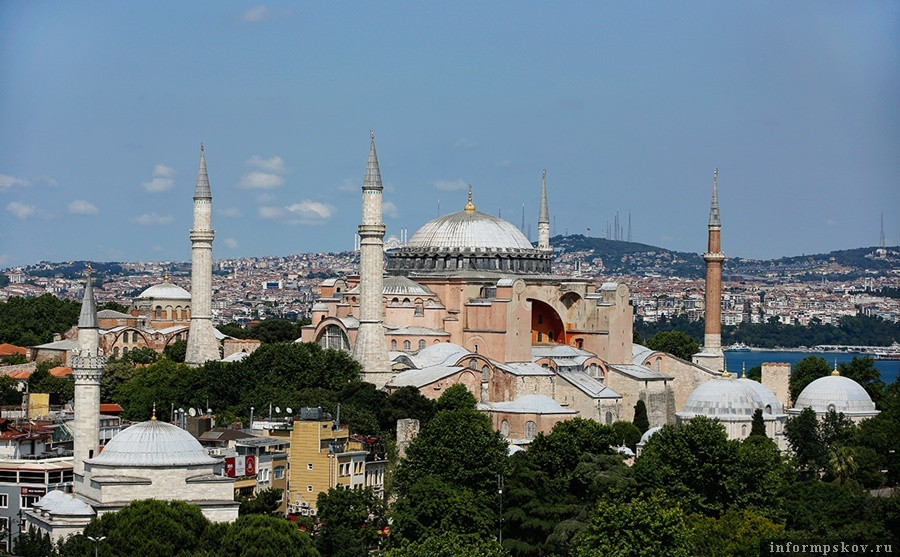 Храм Святой Софии был основан византийским императором-христианином Юстинианом I и открыт 27 декабря 537 года. Собор около тысячи лет был самым большим храмом в христианском мире. После захвата Константинополя османами и падения Византийской империи в 1453 году собор был переделан в мечеть, но с 1934 года здание по декрету основателя современного турецкого государства Кемаля Ататюрка стало музеем и было включено в список Всемирного наследия ЮНЕСКО.