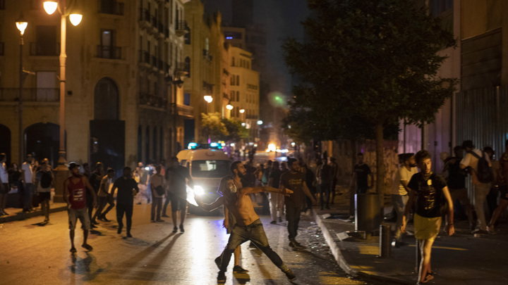 Протестующие забрасывали полицейских камнями и бутылками с зажигательной смесью. В результате кареты скорой помощи увозили с площади раненых и с той и с другой стороны. Это первый массовый протест после взрыва в порту Бейрута 4 августа.