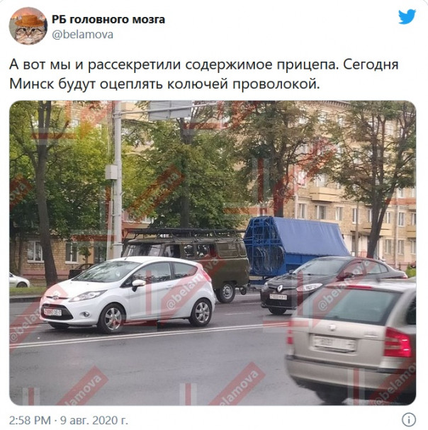 Кроме того, к центру столицы Белоруссии направляются прицепы с колючей лентой «Егоза».