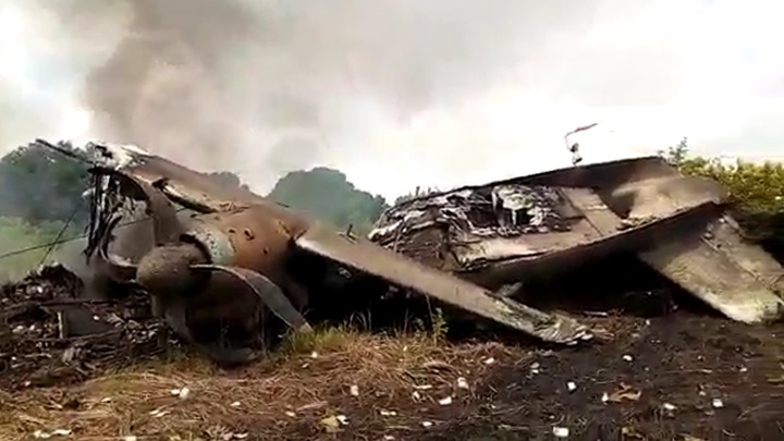 В Сети опубликованы кадры с места крушения транспортного самолета Ан-26, разбившегося в субботу, 22 августа, в Южном Судане.