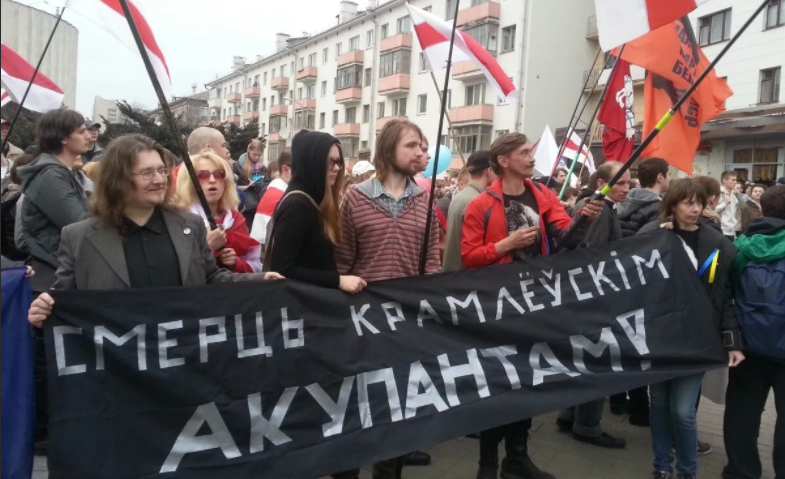 Хочу сказать, что лишь на прошлой неделе в десятках украинских городов, на десятках городских советов были подняты бело-красно-белые флаги с «Погоней», и ряд глав этих городов сделали заявления в поддержку белорусской нации», – отчитался русофоб о проделанной работе. Источник
