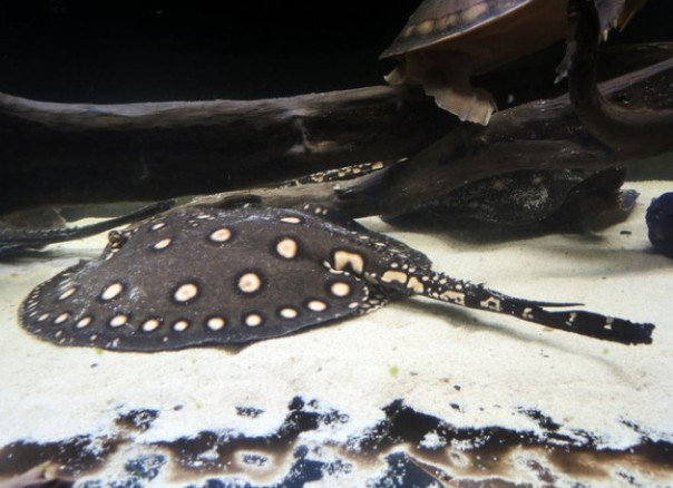 Четыре детеныша речного ската-хвостокола (Potamotrygonidae) появились на свет еще в начале лета. Сейчас малыши подросли, окрепли, и их выпустили в общий бассейн к взрослым особям.
