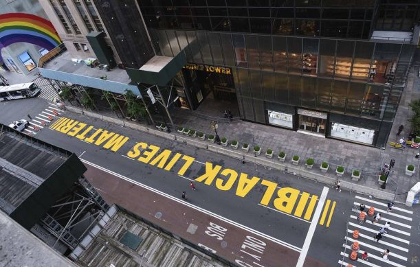 Президент США Дональд Трамп считает, что огромная надпись с главным лозунгом движения Black Lives Matter ("Жизни темнокожих имеют значение") на асфальте у небоскреба "Трамп тауэр" в центре Нью-Йорка вызывает у многих людей гнев.