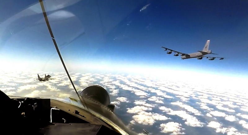 «В-52 под прикрытием украинских истребителей взяли курс в акваторию Черного моря для совместных действий с партнерами в сфере коллективной безопасности. Такие патрулирования будут иметь регулярный характер, ведь миссии В-52 в небе Украины являются частью давно запланированного развертывания шести B-52 на авиабазе Ферфорд Королевских Военно-воздушных сил Великобритании», — заявили в командовании Воздушных Сил ВСУ.