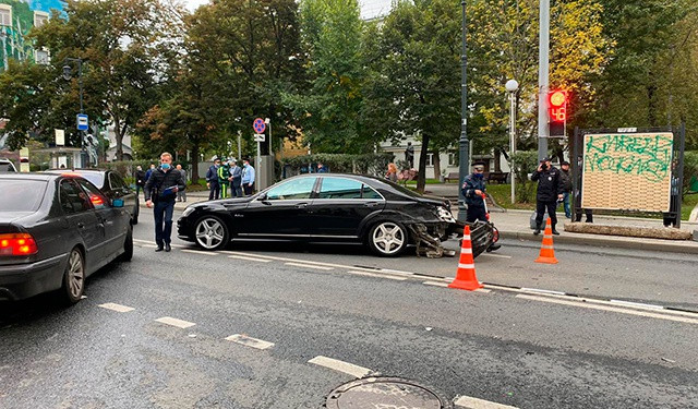 Авария произошла около 16.20 на пересечении улицы Остоженка и переулка Померанцева. По предварительным данным Департамента транспорта Москвы, в произошедшем виноват водитель Infinity, который ехал на красный сигнал светофора.