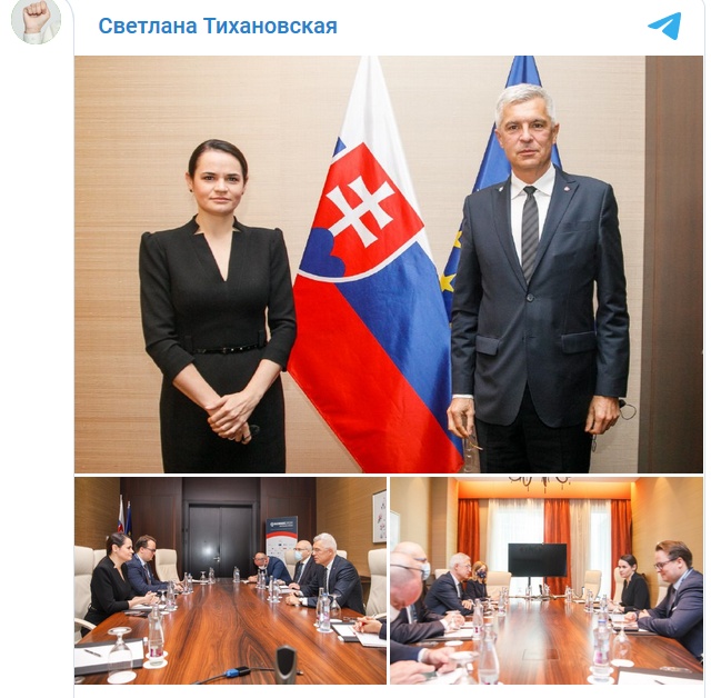 Как сообщается в ее Telegram-канале, белорусская оппозиционерка встретилась с министром иностранных дел Словакии Иваном Корчаком.