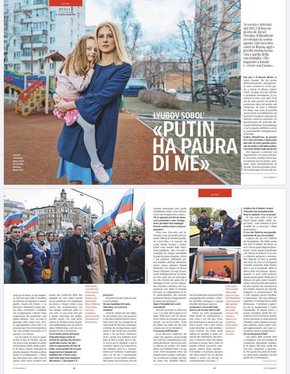 "Путин меня боится" - Люба Соболь в интервью итальянской газете «Corriere della Sera»