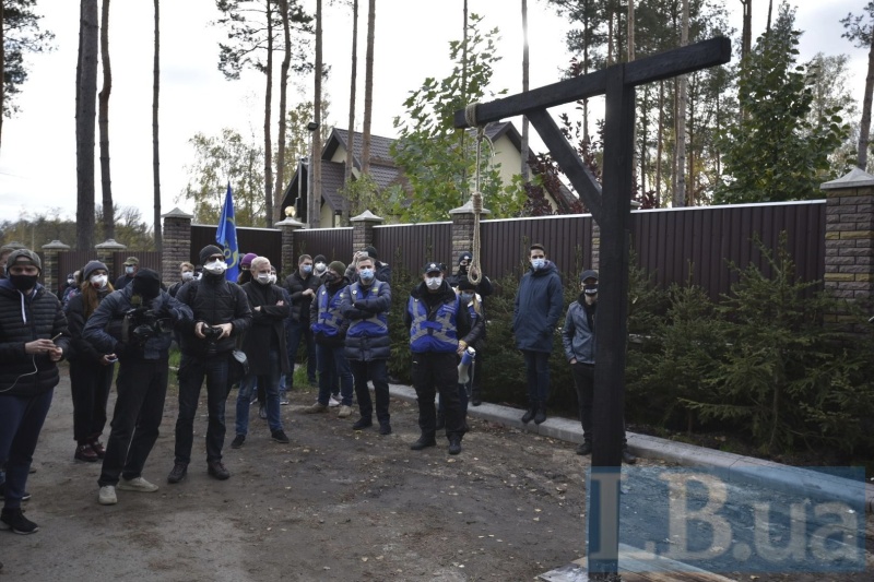 Там они установили виселицу, зажгла фаеры и начали кричать «слава Украине, Тупицкого в отставку».