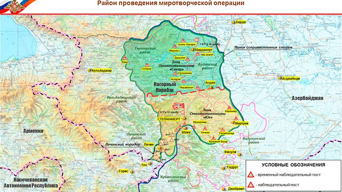 В целях организованного ввода миротворческого контингента с 10 ноября выставлено семь временных наблюдательных постов в Лачинском коридоре (вдоль дороги Забух, свх. Лысогорский, Зарыслы).