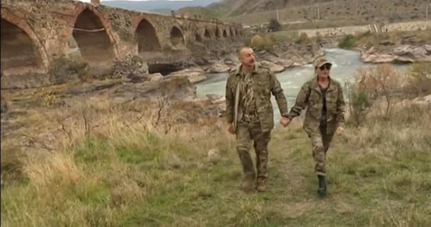 16 ноября Ильхам Алиев вместе с женой Мехрибан нанес визит в южные районы, которые армия Азербайджана взяла под контроль во время 44-дневной войны с Нагорно-Карабахской Республикой. Как сообщила пресс-служба главы Азербайджана, президент прибыл к Худаферинскому мосту и поднял флаг Азербайджана. «Затем Президент Ильхам Алиев и первая леди Мехрибан Алиева прогулялись по берегу реки Араз, сделали фото на память перед Худаферинским мостом», — говорится в сообщении пресс-службы президента Азербайджана.