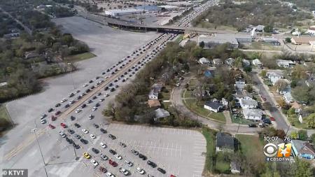 В Техасе многокилометровые очереди за бесплатным хавчиком выстраиваются.