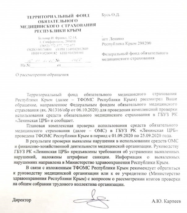 На фоне разразившегося скандала, крымчане собрали подписи и подали коллективное обращение Президенту России Владимиру Путину с просьбой уволить главврача с занимаемой должности.