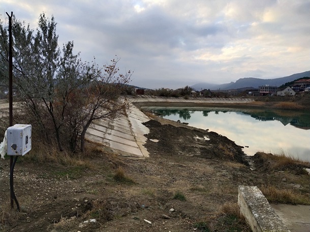 В Крыму опубликовали фото обмелевшего водоема в Солнечной долине.