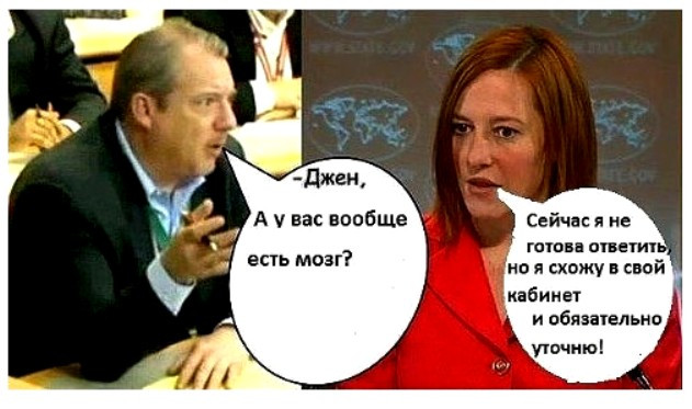 Псаки получила свою популярность за большое количество нелепых высказываний, главная суть которых всегда одна – во всем виновата Россия. В СМИ же ее неоднократно высмеивали за такие цитаты: