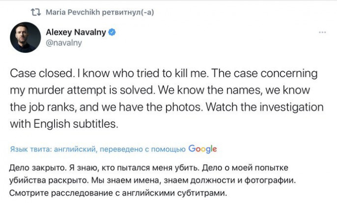 За неоднократно судимым блогером постоянно следили с начала 2017 года (как минимум). "В 2020 году охота на Навального возобновилась в полную силу". Травить "Новичком" Алексея пытались не дважды, а трижды - 6 июля в Калининграде промахнулись и по ошибке траванули его супругу, но тоже безуспешно ("На следующий день она чувствовала себе отлично, как будто ничего и не было"). Сам Навальный добавил к этому, что не трижды, а четырежды: "Пару лет назад, я не помню, когда точно, я сел в самолёт в Москве и полетел в одну из региональных поездок. Через час после взлёта меня пробил холодный пот, и я почувствовал, что мне очень-очень плохо. Так плохо, что я сейчас умру. Поскольку я был весь мокрый, я с трудом дошёл до туалета, там умылся холодной водой. Посидел 15 минут, и всё прошло. Я вернулся на своё место и поделился этой историей только со своим пресс-секретарём Кирой, которая сидела рядом, и позже со своей женой".