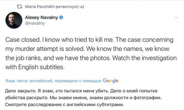 Журналист Игорь Мальцев: "Парни, вы там уже как-то договоритесь, сколько было попыток — три, пять или восемь с половиной (как у Феллини) — и где именно. А то стрёмно по стране ездить — не знаешь, где столкнёшься с отравленным Навальным. Я бы на месте The Insider не останавливался: пора поднять шокирующие факты отравления Лёшеньки в 8-м классе школы подозрительным пончиком из школьной столовки — уже тогда режим знал, кто будет его могильщиком. И вот совсем уже страшное: акушерка в роддоме чуть не уронила младенца-Навального чёрт знает уже в каком году чуть-чуть об пол. Чуть-чуть — и гебухе в лице главврача роддома удался бы заговор по ликвидации Навального. Но вот меня смущает постоянное «чуть-чуть». Его всё время чуть-чуть не отравили, чуть-чуть не удавили, чуть-чуть не ослепили, чуть-чуть не переехали тележкой в супермаркете. Но. Если бы наши оппозиционэры были знакомы с русской культурой, то они бы знали русскую поговорку «Чуть-чуть — не считается»".