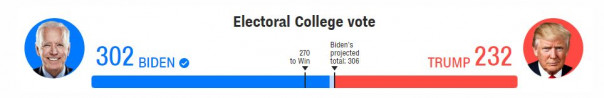 По предварительным данным СМИ, Байден набирает 306 выборщиков против 232 у Трампа.