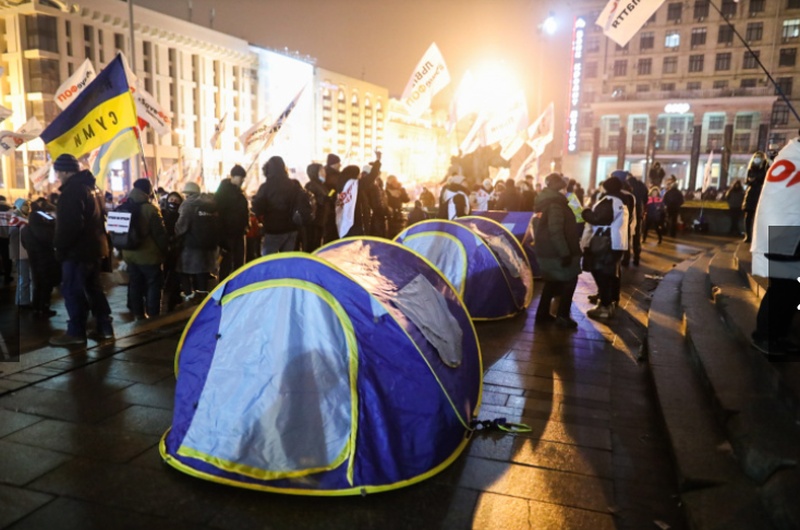 В Киеве на Майдане Независимости продолжается акция протеста «SaveФОП». Около 200 участников митинга намерены ночевать на площади, для этого оборудованы палатки.