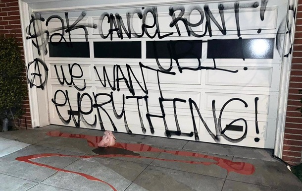 На двери гаража написали: "Отменить найм" и "Мы хотим все", а также намеки на месть из-за принятого бюджета, в котором отклонили предложение о выплате пострадавшим в пандемию двух тысяч долларов. Пятна красной краски, напоминающие кровь, были нанесены на асфальт перед домой, гараж и дерево. Также сообщается, что поблизости была обнаружена свиная голова.