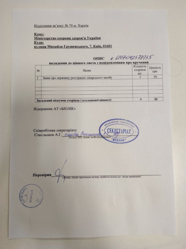 АО «Биолек» также опубликовало копии документов, в том числе запроса на регистрацию «Спутника V».