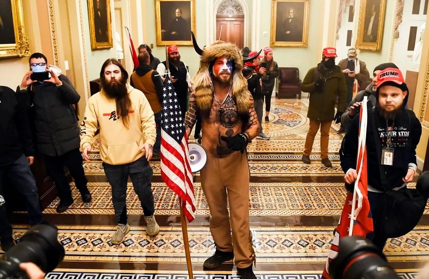 Американские власти задержали и предъявили обвинения жителю штата Аризона Джейкобу Энтони Чансли, который, предположительно, был запечатлен в ходе беспорядков в Конгрессе 6 января в медвежьей шапке с рогами и копьем. Как сообщает в субботу Министерство юстиции США, Чансли предстал перед судом столичного округа Колумбия.