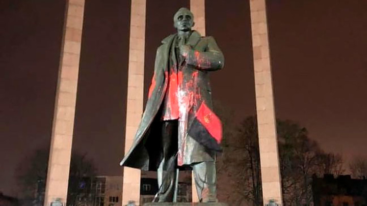 Во Львове неизвестные Львове облили красной краской памятник Степану Бандере.