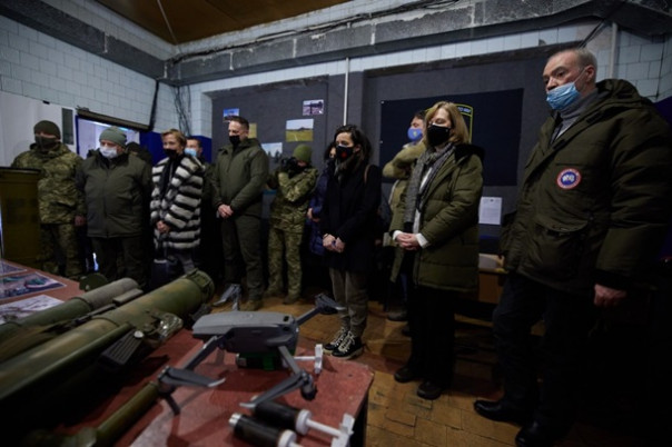 Отмечается, что вместе с главой государства в Донбасс отправились послы стран "Большой семерки".
